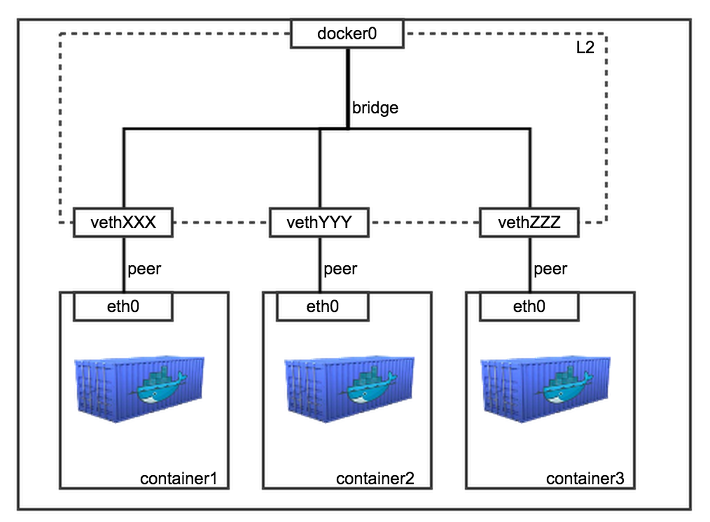 docker 네트워크는 내부 컨테이너 안에서 ifconfig를 명령어를 입력하면 eth0에 172.17.x.x 형태로 할당 되어있는것을 볼수있고, 이 할당된 ip는 veth라는 가상 망을통해 docker에 기본 bridge인 docker()과 이어져있다.