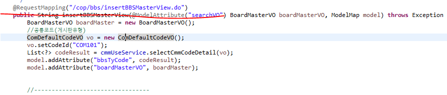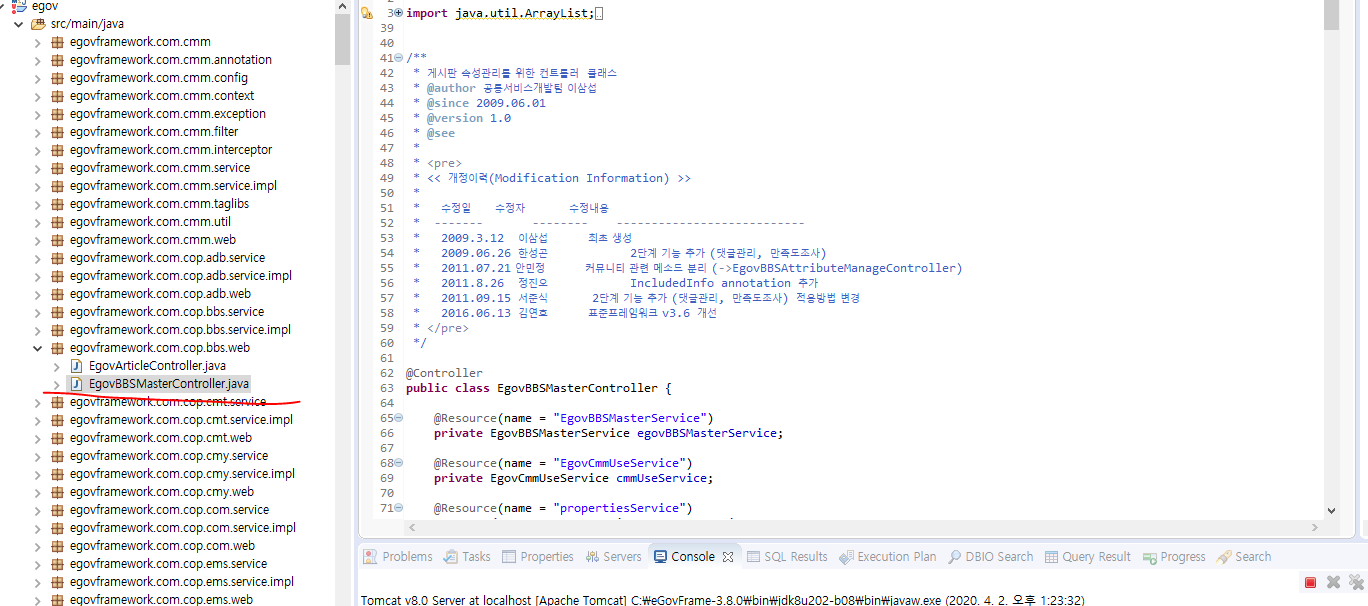 게시판 관리에 들어가보면 아래와 같은 내용이 보이고 저 경로를 따라서 EgovBBSMasterController를 열어보자