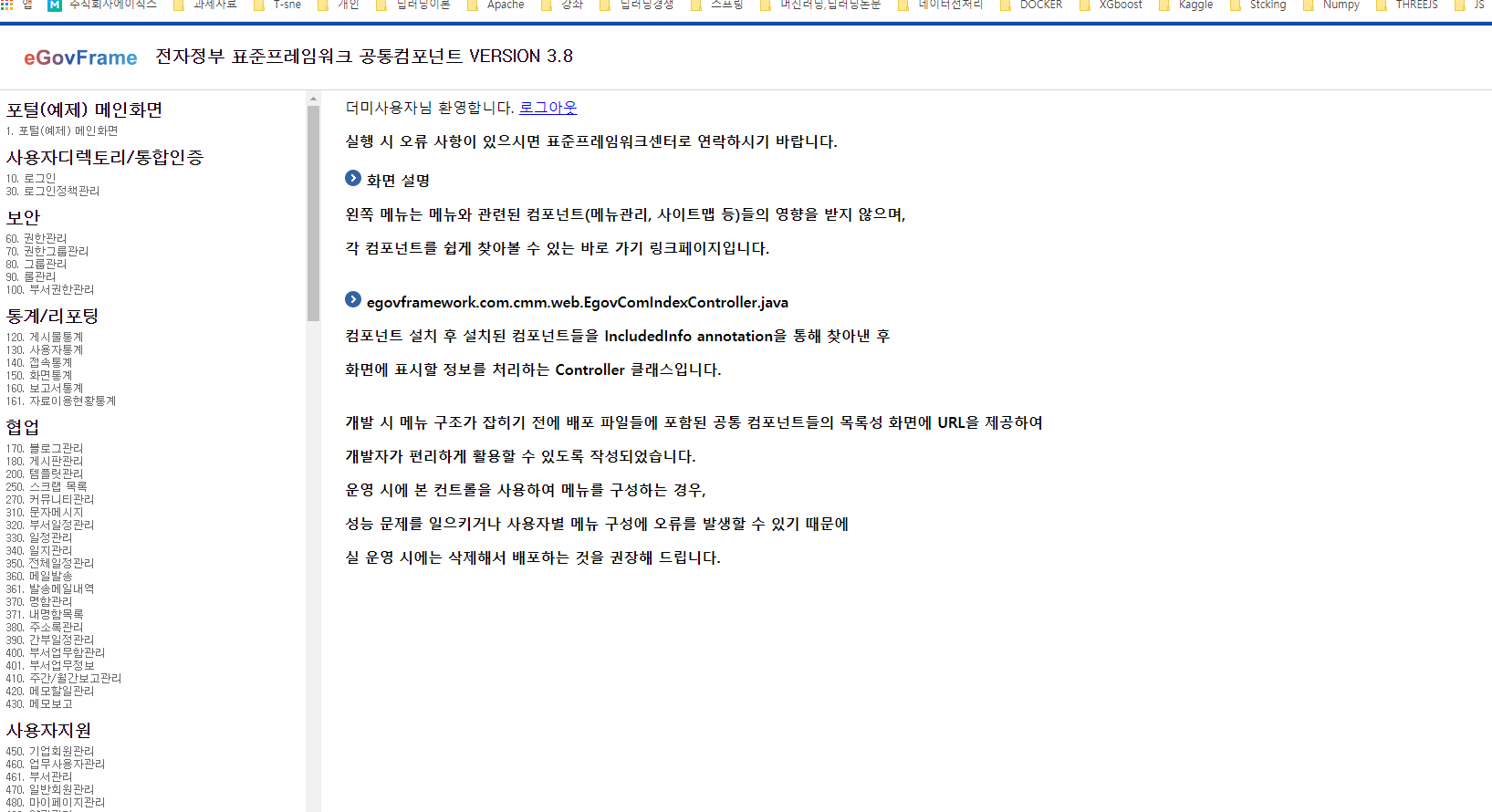 dummy를 입력하고 /egov 에 접속하면 다음과 같이 자동 로그인이된다.