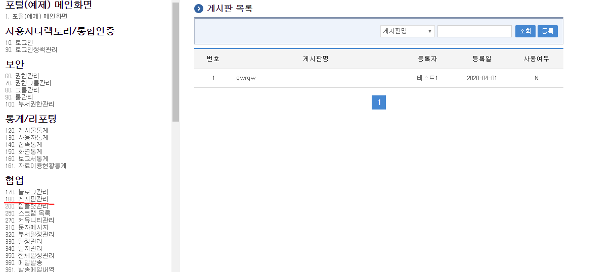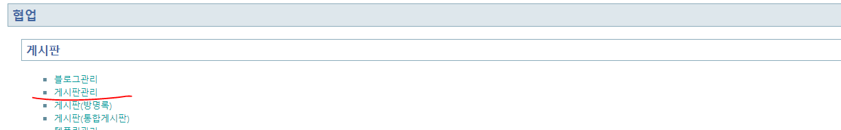 자 이제는 큰 카테고리에 협업이라고 쓰여있는 게시판관리를 가보자