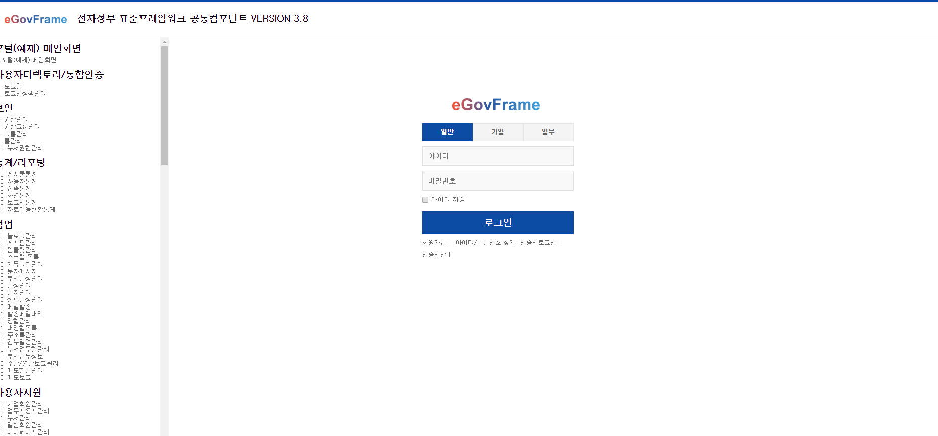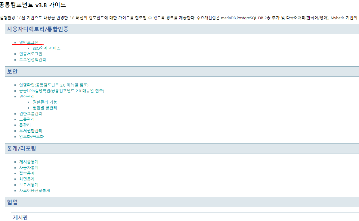 표준프레임워크 포털에 들어가서 개발 가이드 -> 공통컴포넌트 -> 표준프레임워크 공통컴포넌트 3.8 가이드 -> 공통컴포넌트별 가이드로 접속하면 여러 큰 카테고리가 나오고 일반로그인을 클릭하면 여러가지 설명이나온다.
