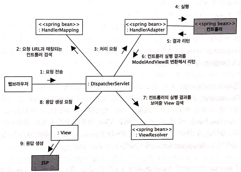 위 구성도에서 보듯 DispatcherServlet이 중심에서 컨트롤 하는것을 볼수있다.