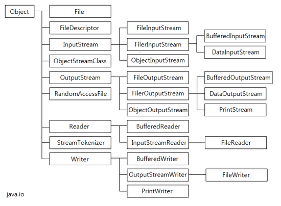데이터가 프로세스로 흘러 들어올때는 InputStream을 사용하고 , 데이터가 프로세스로부터 나가면 OutputStream을 사용한다.