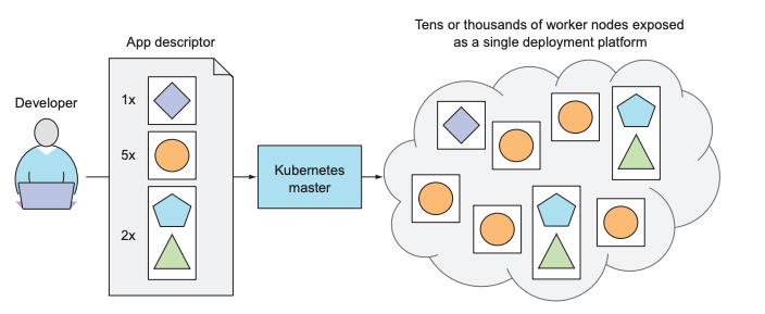 Kubernetes는 하드웨어 인프라를 추상화하고 전체 데이터 센터를 하나의 거대한 컴퓨팅 리소스로 노출합니다. 그러므로 실제 서버에 대해 알 필요 없이 소프트웨어 구성 요소를 배포하고 실행할 수 있습니다. 쿠버네티스를 통해 다중 컴포넌트 애플리케이션을 배포할 때, 쿠버네티스는 각 컴포넌트에 대한 서버를 선택하고, 배포하며, 애플리케이션의 다른 모든 컴포넌트를 쉽게 찾고 통신할 수 있도록 합니다.