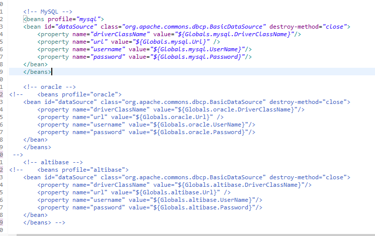 context-dataousrce.xml에 있는 설정내용중 mysql을 제외한 beans들을 모두 주석처리해준다.!