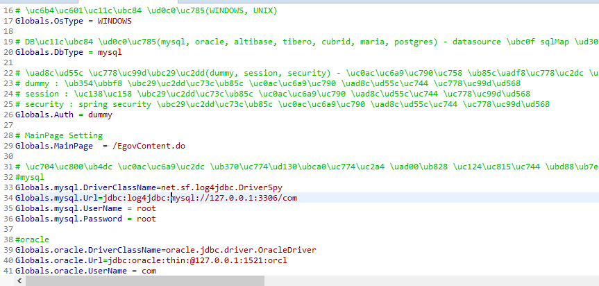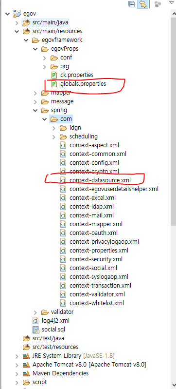 두개의 globals.properties와 context-datasource.xml 을 수정할것이다.