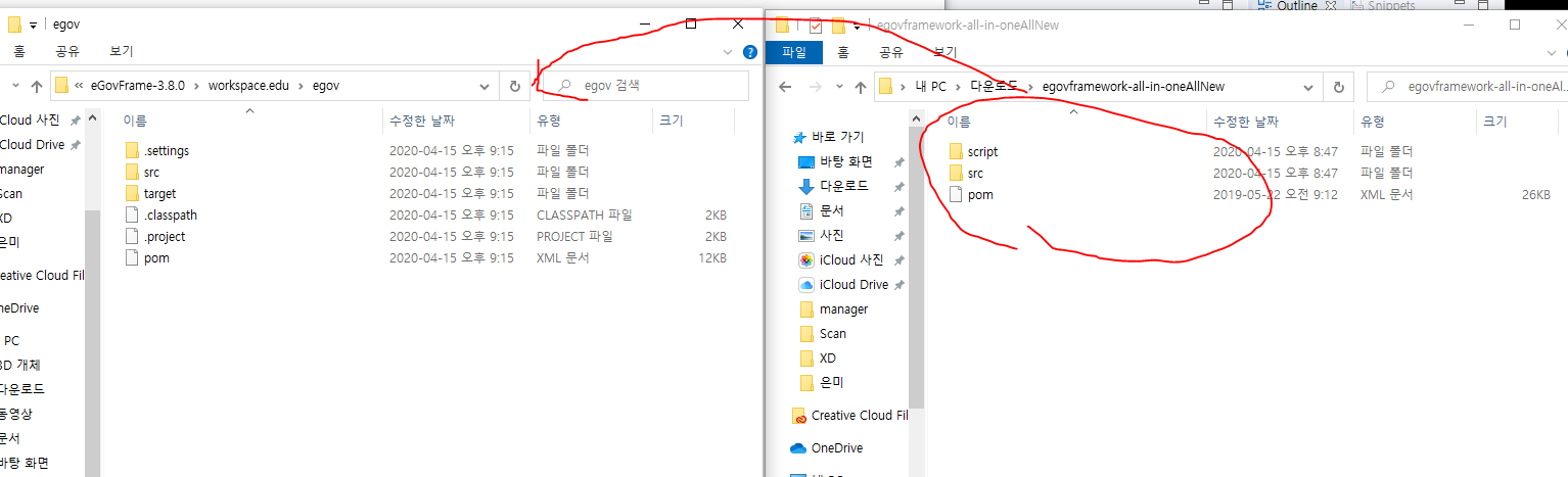 script , src , pom.xml을 잘라내기해서 egov 패키지 안에 붙여넣는다. (보안 패치 및 올인원 패키지를 넣을려고한다.)