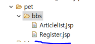 jsp까지 만들었으니 이제 글쓰기 버튼을 누르면 지금만든 Register.jsp를 사용자에게 보여주는 로직을 짜봅시다.