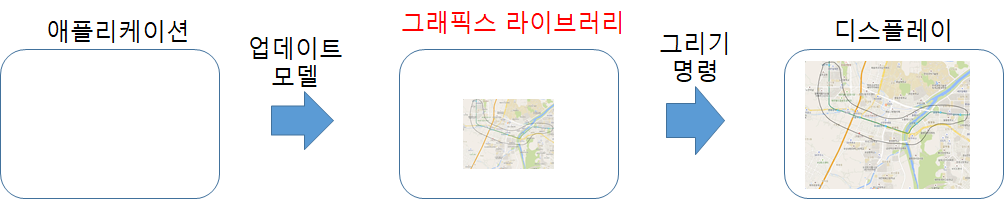 표현하려면 로우 레벨 소프트웨어 드라이버를 호출하는 API를 호출해 그래픽 데이터를 버스를 거쳐 그래픽 처리 장치로
