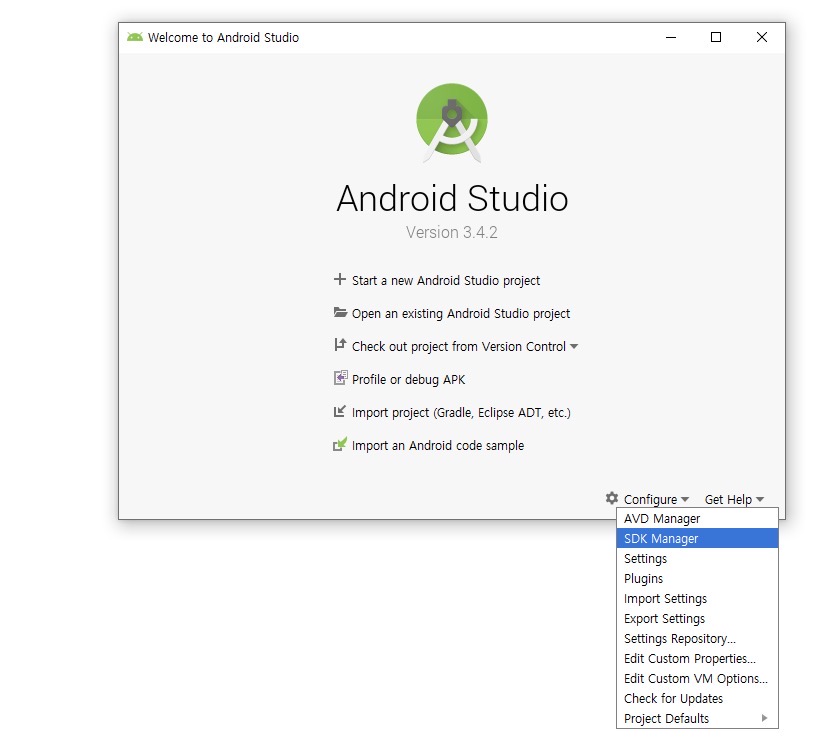 안드로이드 스튜디오를 실행한뒤 sdk manager를 클릭한다 그후